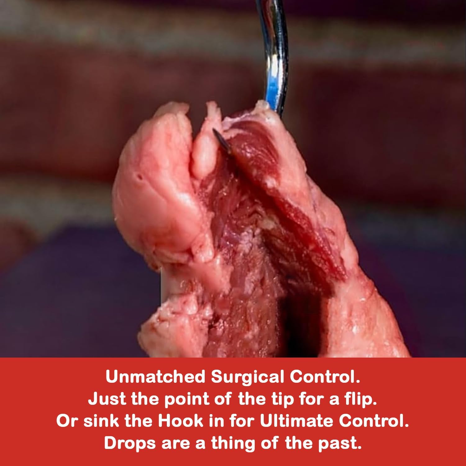 The BBQ Hooker allows you to avoid dangerous cross contamination and flare ups.